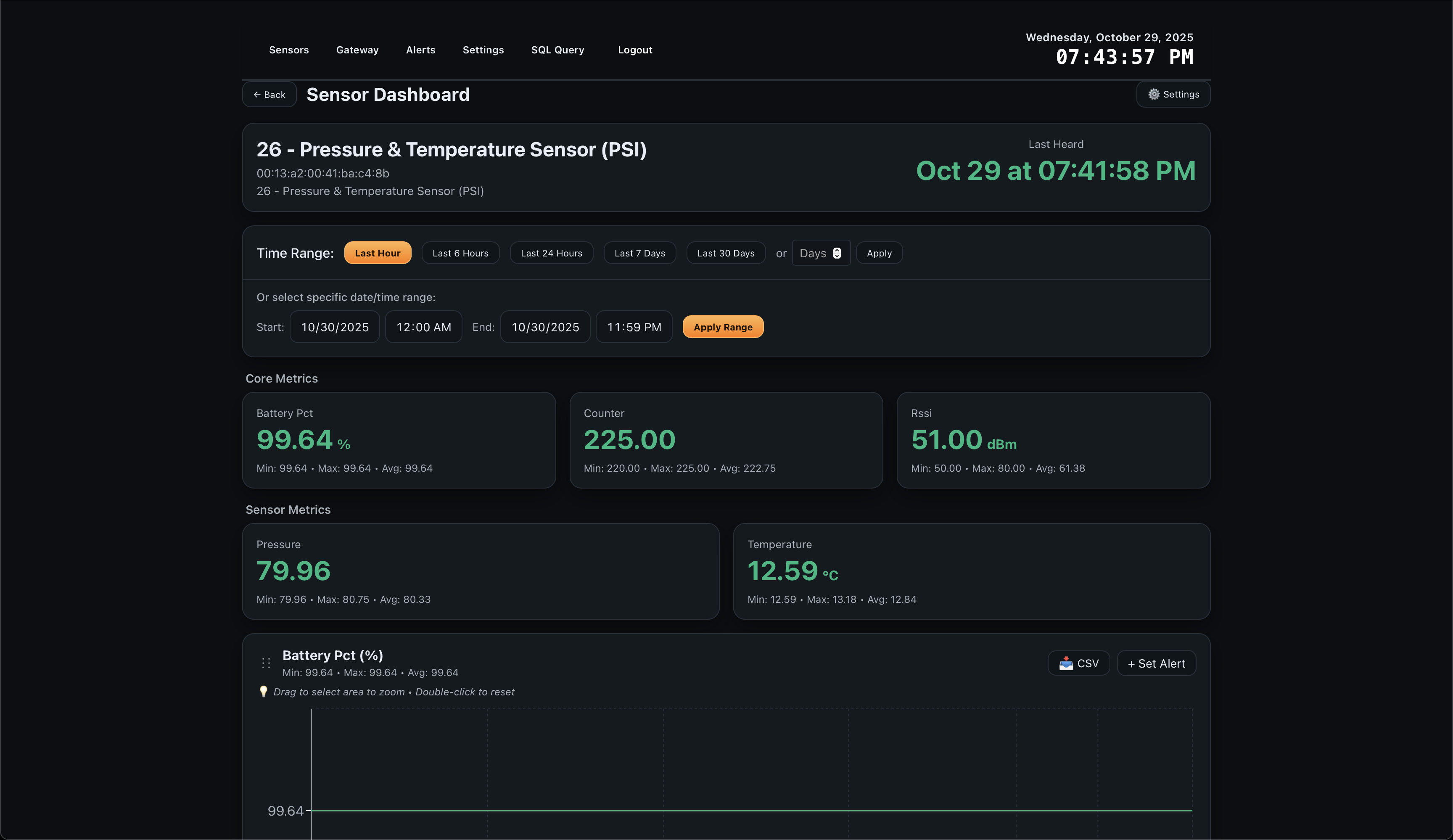 Sensor Metrics Dashboard