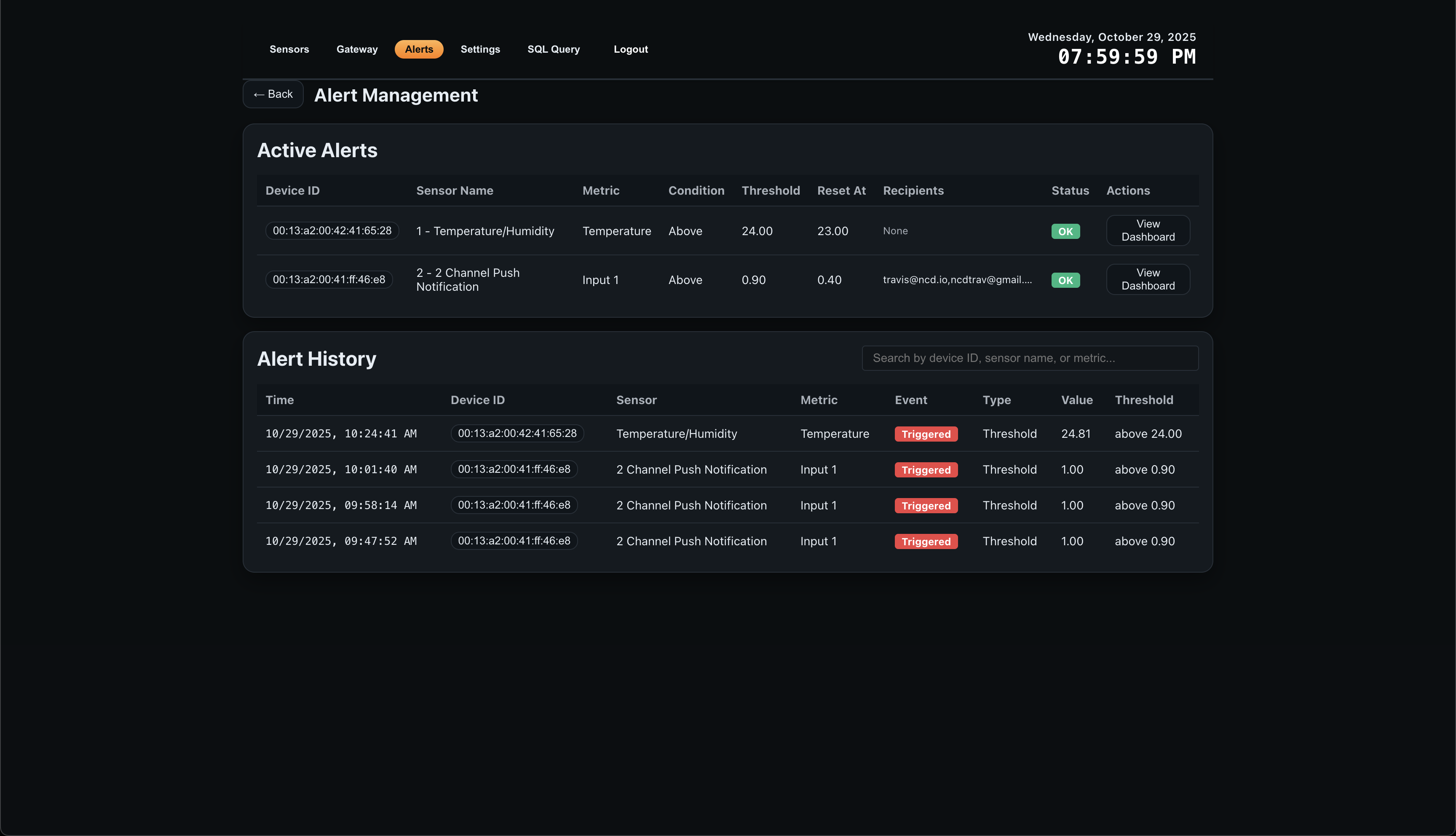 - Multi-recipient alert configuration