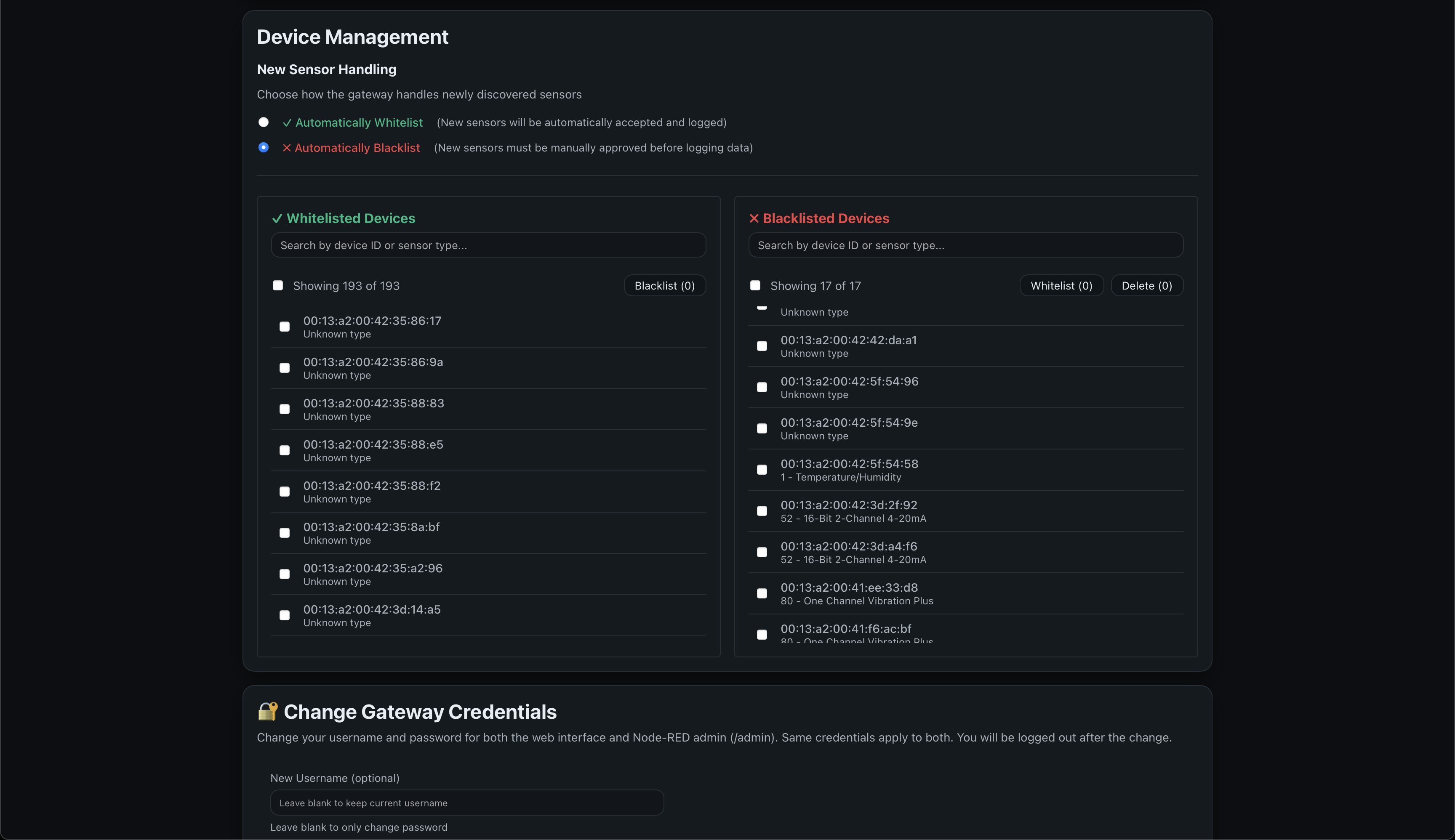 - Auto-whitelist/blacklist new sensors